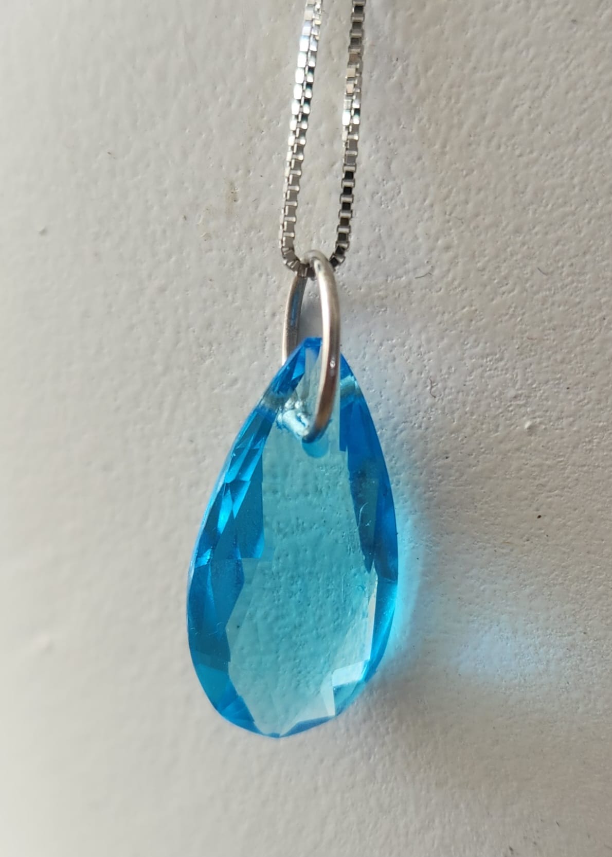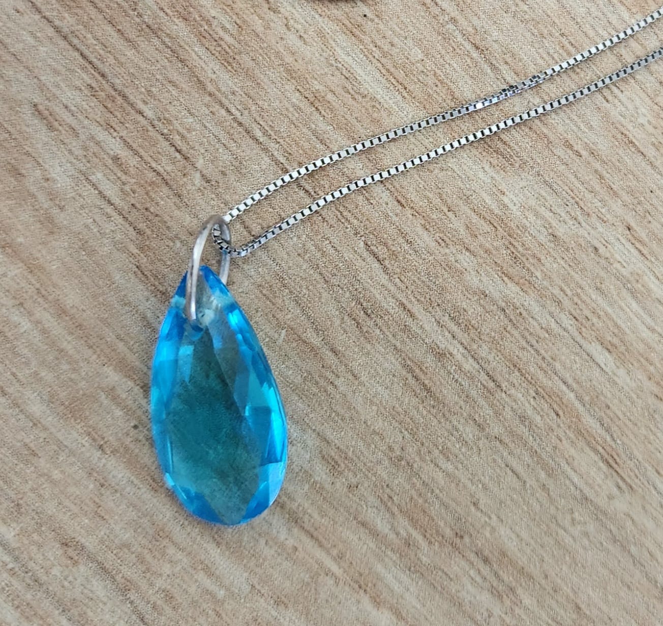 תליון בלו טופז גדול מימדים טבעי מהמם בתליית שרשרת זהב לבן